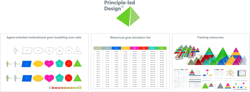 An icon set was developed for these goals as illustrated in Figure 1. This includes the conventional parallelogram and cloud to signify functional and quality goals with the introduction of a heart symbol to signify emotional goals.
